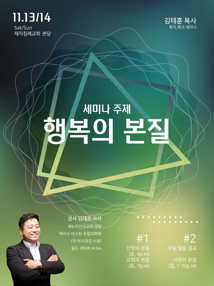 목자 목녀 세미나 페이지 정보 작성자 달라스제자침례교회 날짜 2022-02-02 12:10 목록 본문 (2021.11.14) 김태훈 목사 목자 목녀 세미나 이전글목자 목녀 훈련 22.02.02 다음글청년부 가을맞이 야외 소풍 22.02.02 댓글 0 댓글목록 등록된 댓글이 없습니다. 목록