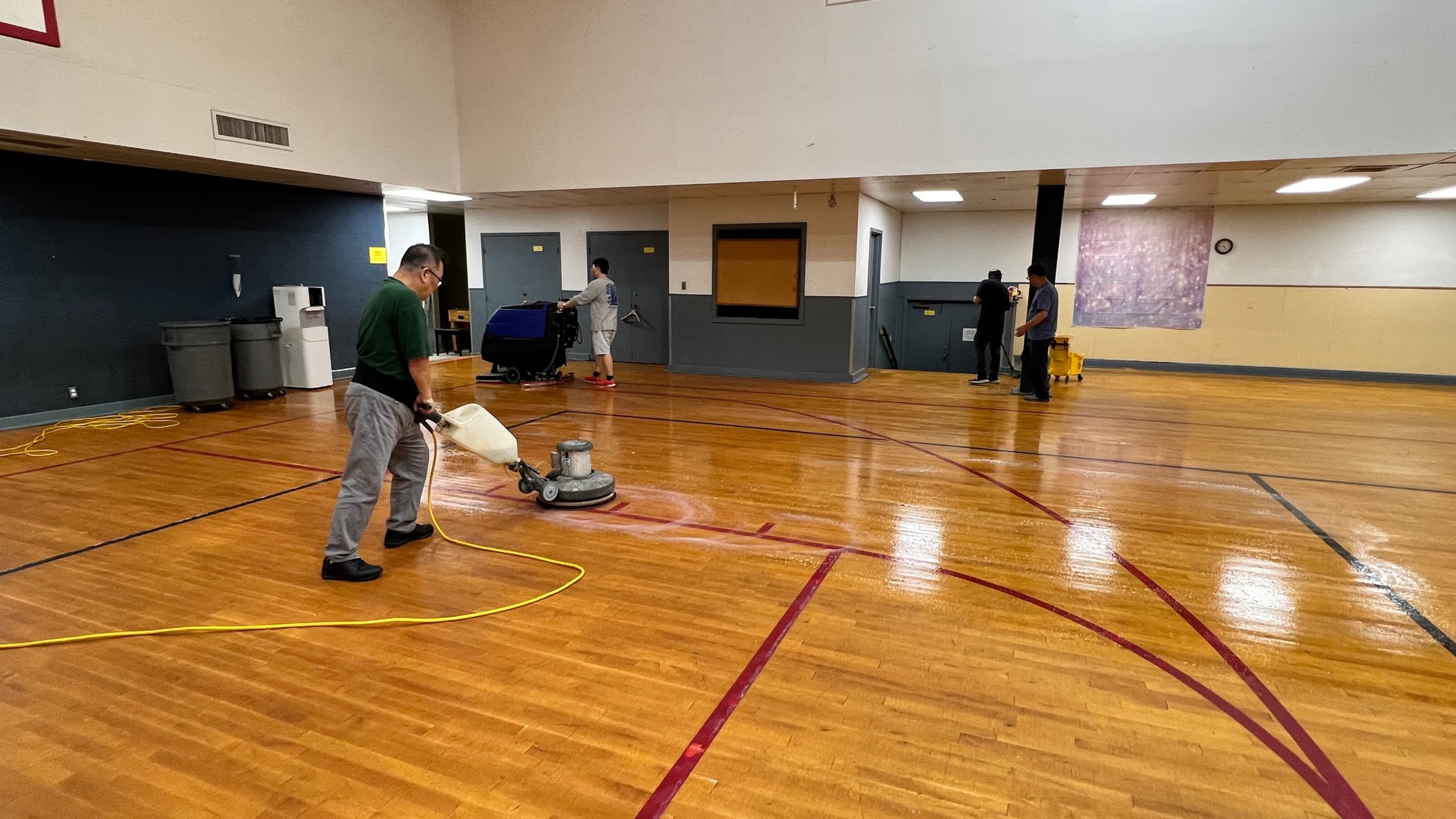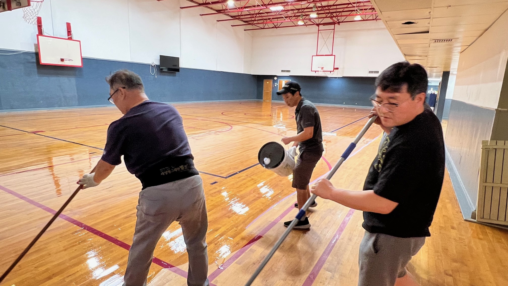교회 GYM Floor Refinishing 작업을 교회 어르신들을 주축으로