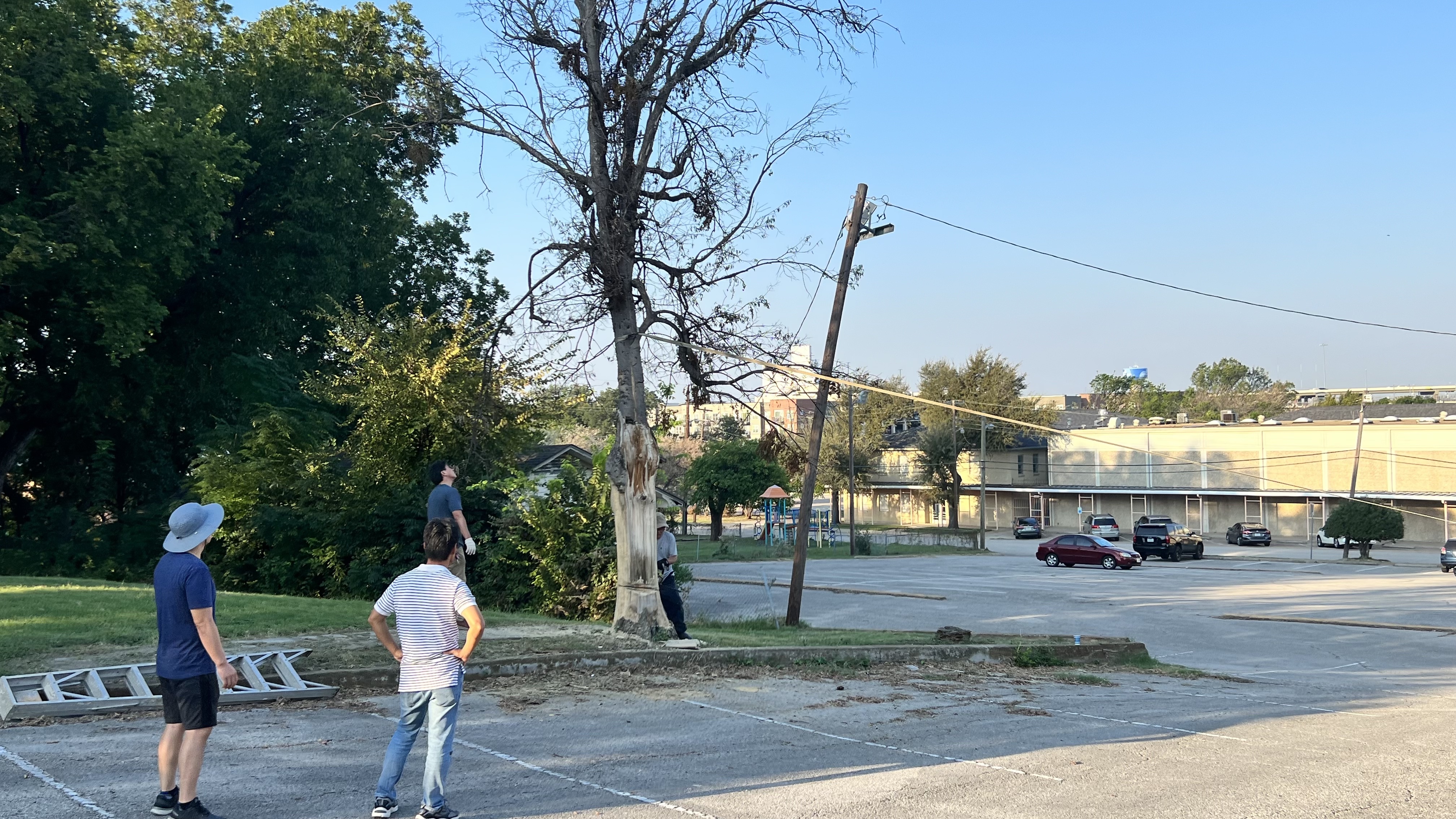 교회 주차장에 전봇대를 간섭하는 죽은 나무를 정리하기 위해 남집사님께서 귀한 시간을 내어주셨습니다.