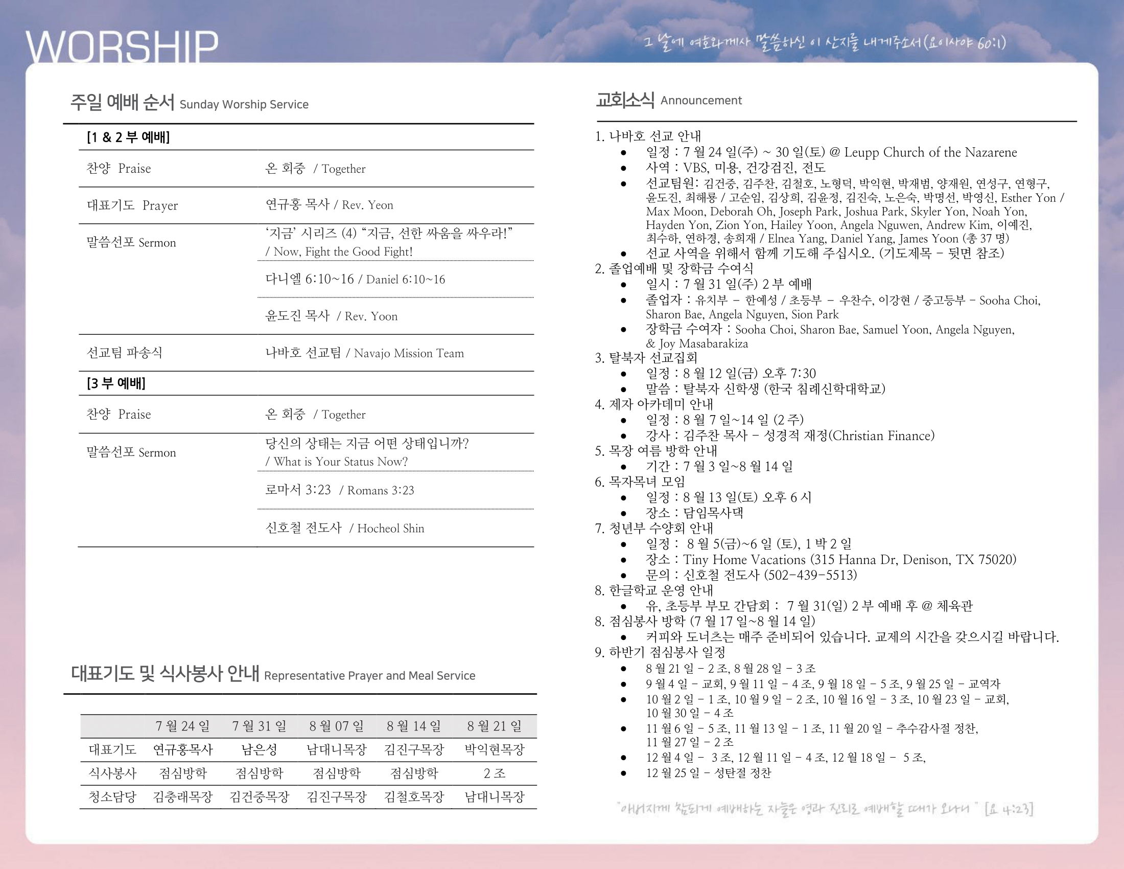(2022.07.24) 주일 주보 페이지 정보 작성자 달라스제자침례교회 댓글 0건 조회 641회 작성일 22-07-23 14:02 목록 본문 (2022.07.24) 주일 주보 이전글(2022.07.31) 주일 주보 22.07.30 다음글(2022.07.17) 주일 주보 22.07.16