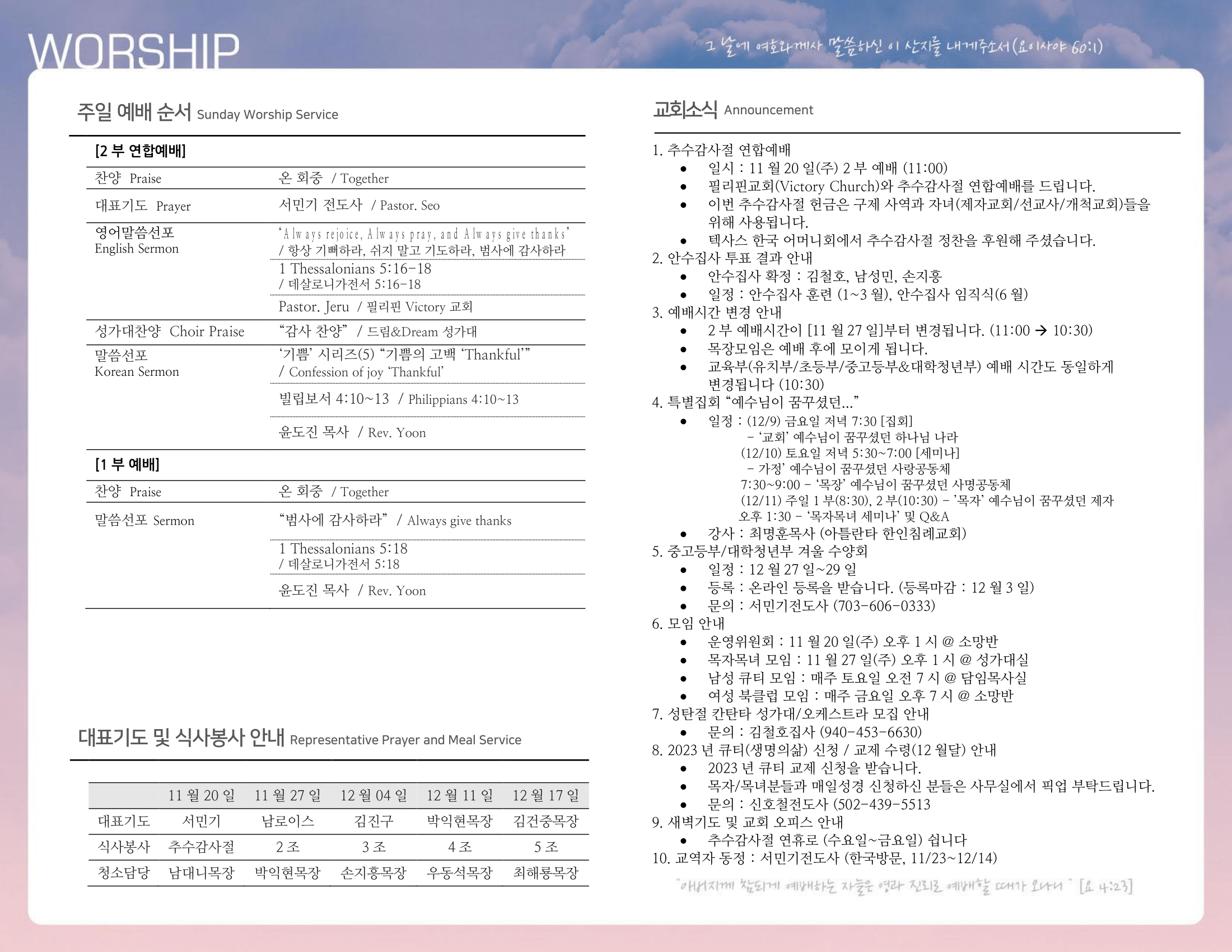 (2022.11.20) 주일 주보 페이지 정보 작성자 달라스제자침례교회 댓글 0건 조회 673회 작성일 22-11-19 12:45 목록 본문 (2022.11.20) 주일 주보 이전글(2022.11.27) 주일 주보 22.11.26 다음글(2022.11.13) 주일 주보 22.11.12