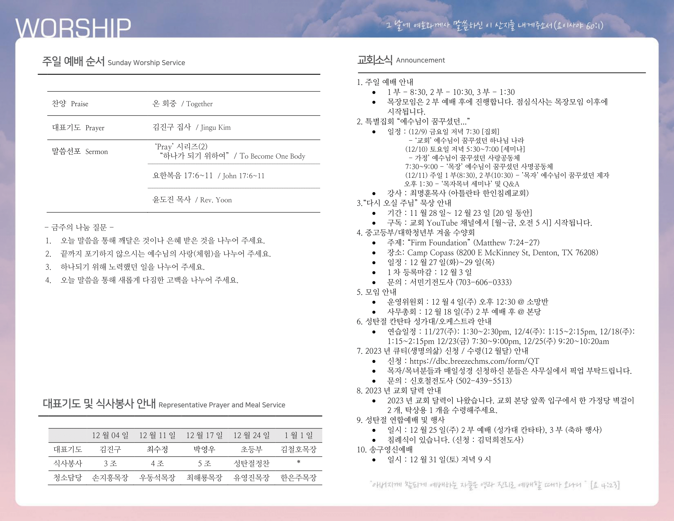 (2022.12.04) 주일 주보 페이지 정보 작성자 달라스제자침례교회 댓글 0건 조회 774회 작성일 22-12-03 12:22 목록 본문 (2022.12.04) 주일 주보 이전글(2022.12.11) 주일 주보 22.12.10 다음글(2022.11.27) 주일 주보 22.11.26