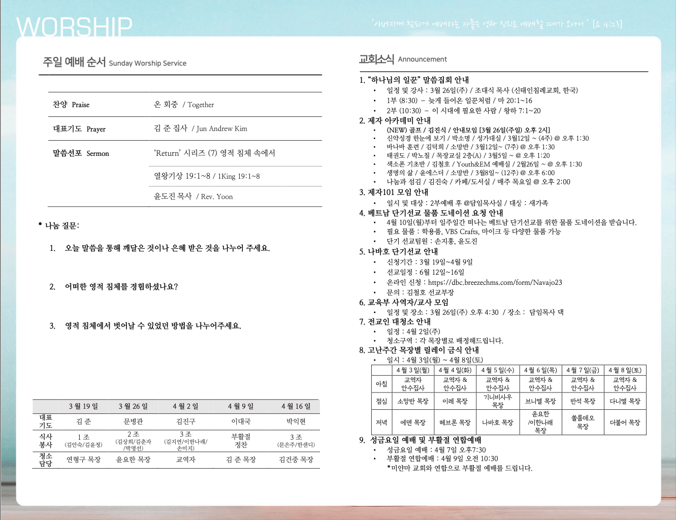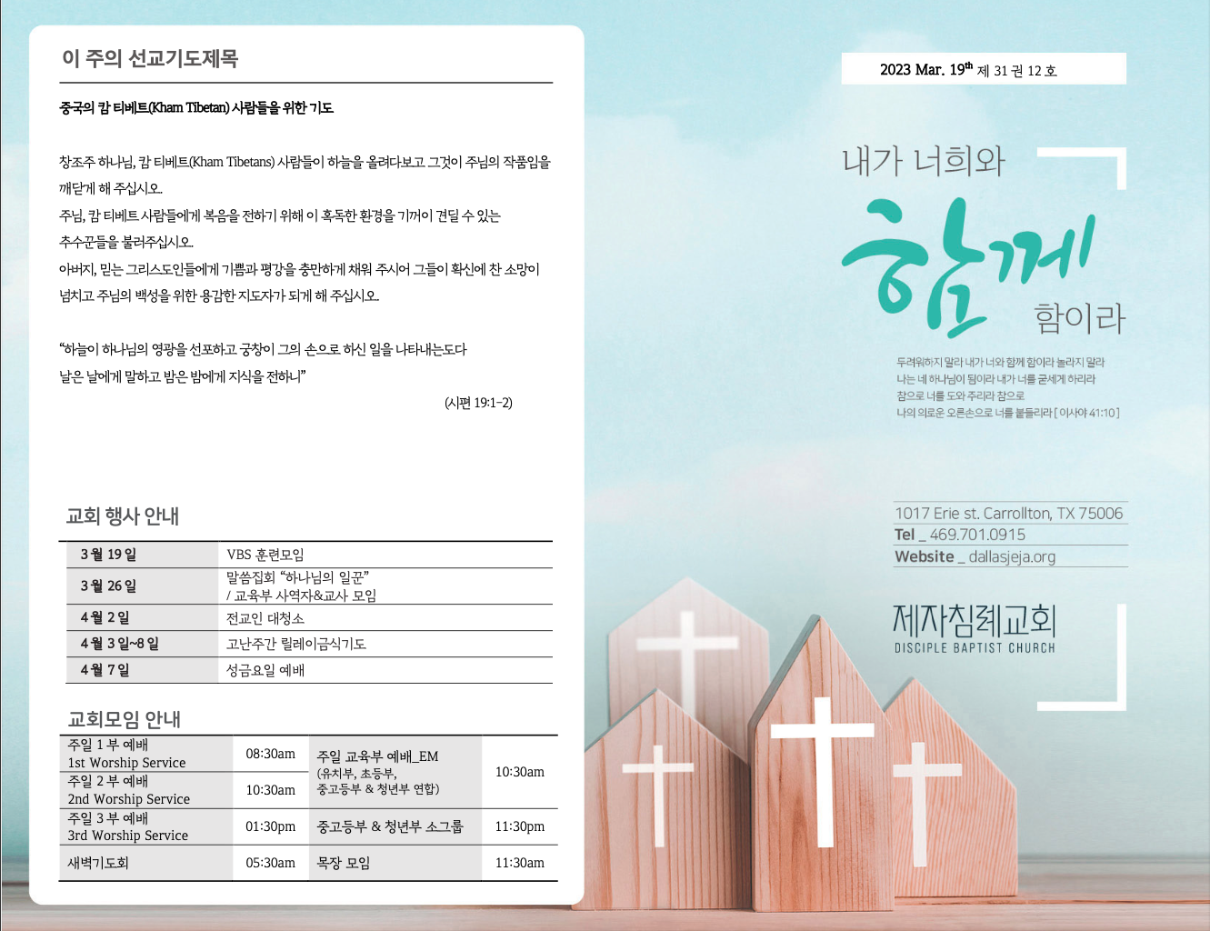 (2023.3.19) 주일 주보 페이지 정보 작성자 달라스제자침례교회 댓글 0건 조회 347회 작성일 23-03-18 13:02 목록 본문 - 이전글(2023.3.26) 주일 주보 23.03.25 다음글(2023.3.12) 주일예배 주보 23.03.11