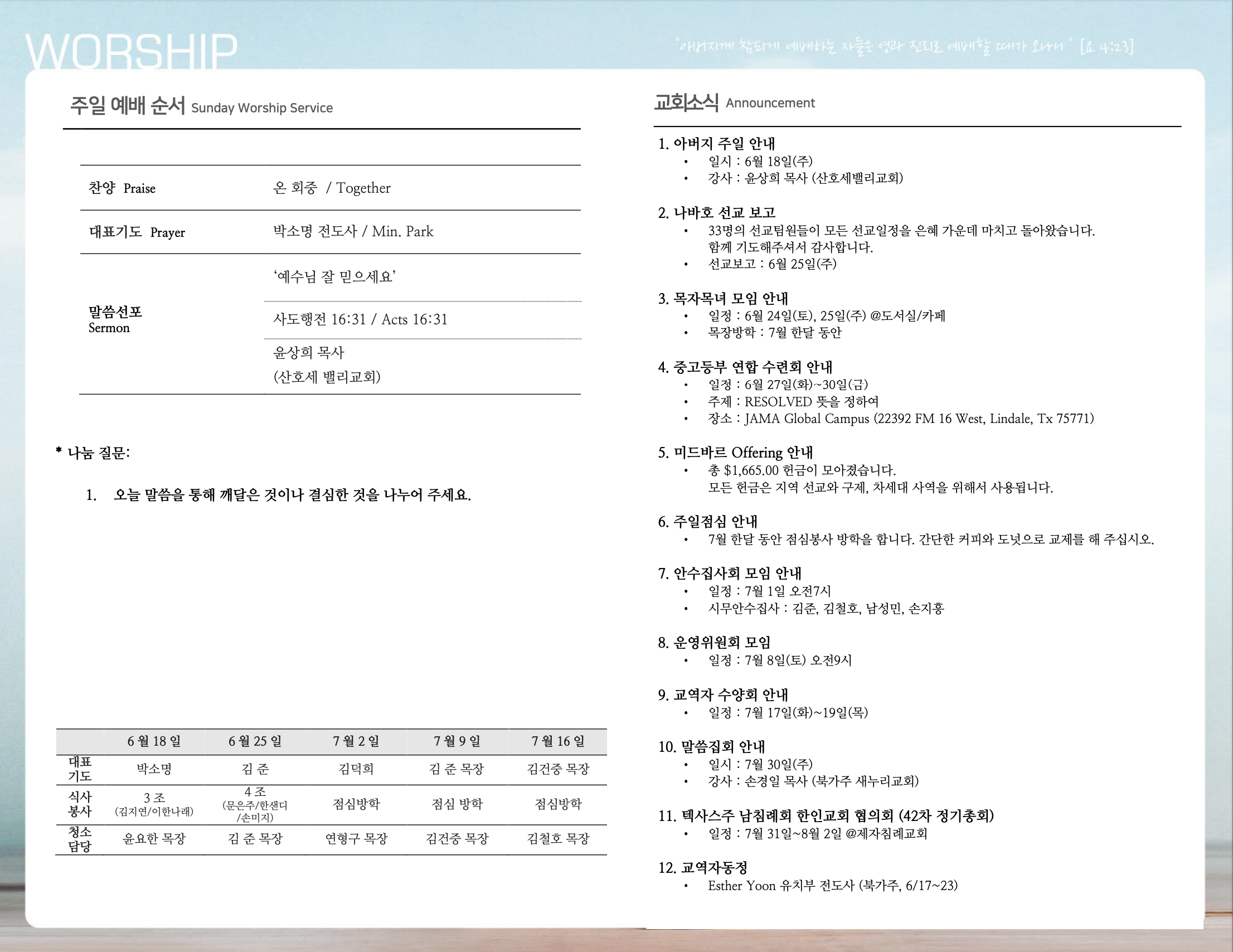 (2023.06.18) 주일예배 주보 페이지 정보 작성자 달라스제자침례교회 댓글 0건 조회 390회 작성일 23-06-17 12:41 목록 본문 - 이전글(2023.06.25) 주일예배 주보 23.06.24 다음글(2023.06.11) 주일예배 주보 23.06.10