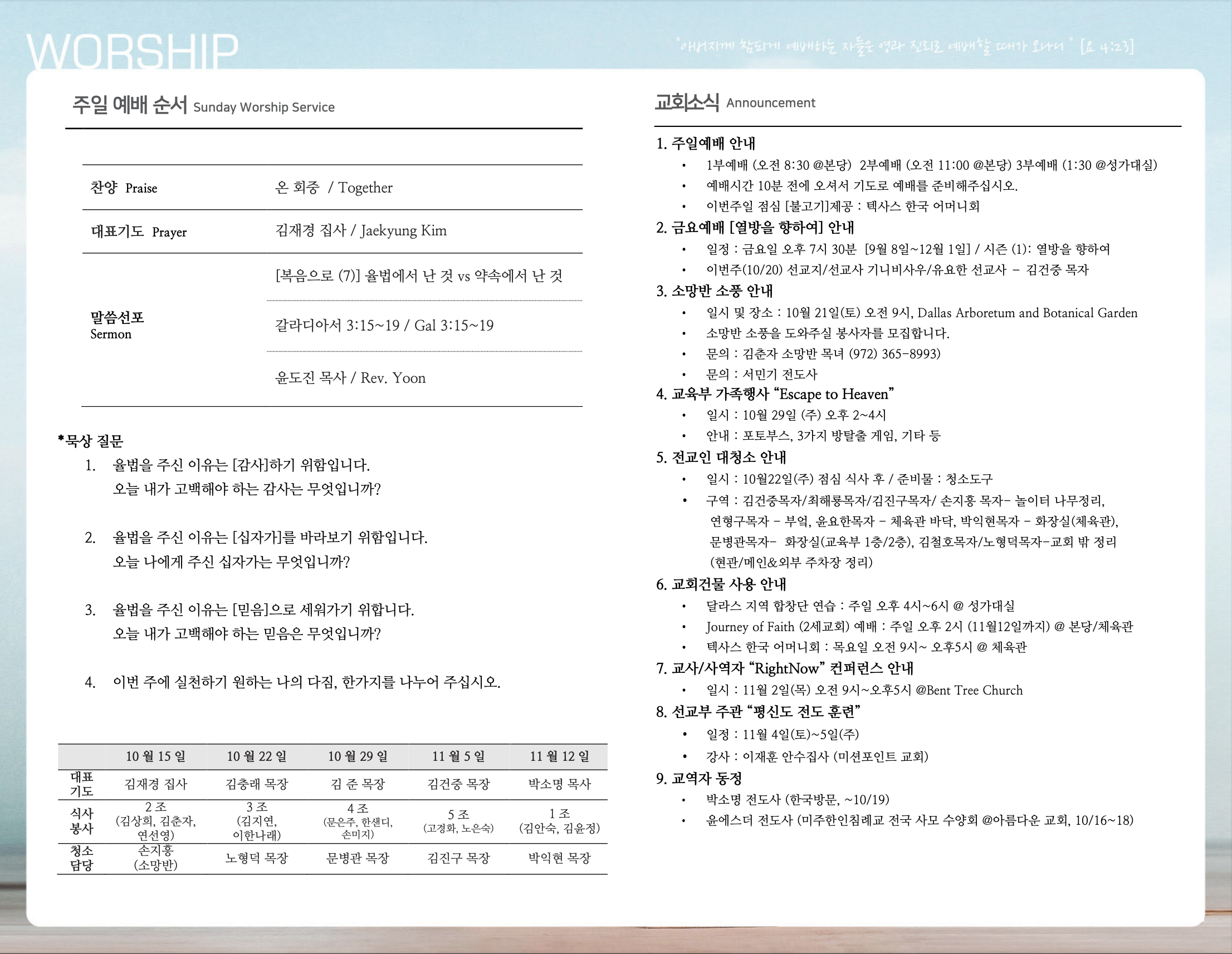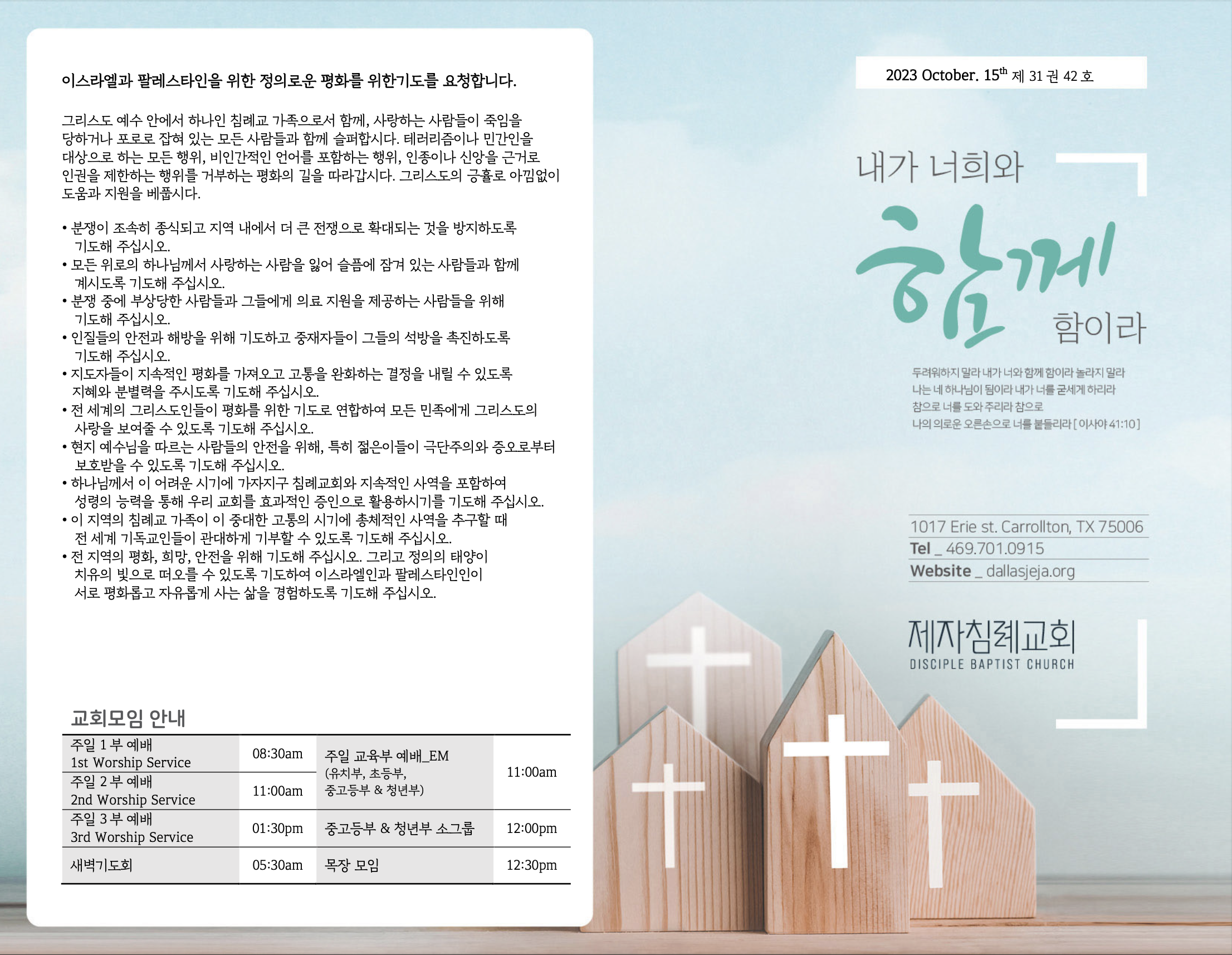 (2023.10.15) 주일예배 주보 페이지 정보 작성자 달라스제자침례교회 댓글 0건 조회 350회 작성일 23-10-14 06:50 목록 본문 - 이전글(2023.10.22) 주일예배 주보 23.10.21 다음글(2023.10.08) 주일예배 주보 23.10.06