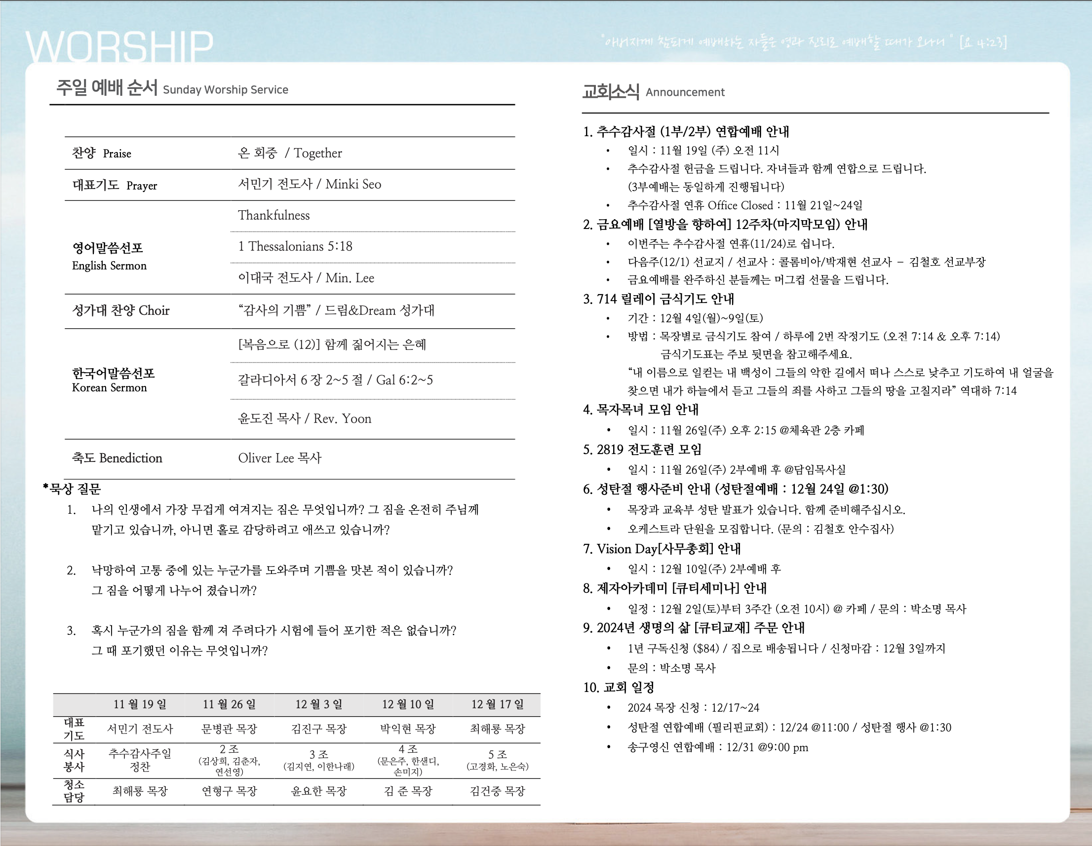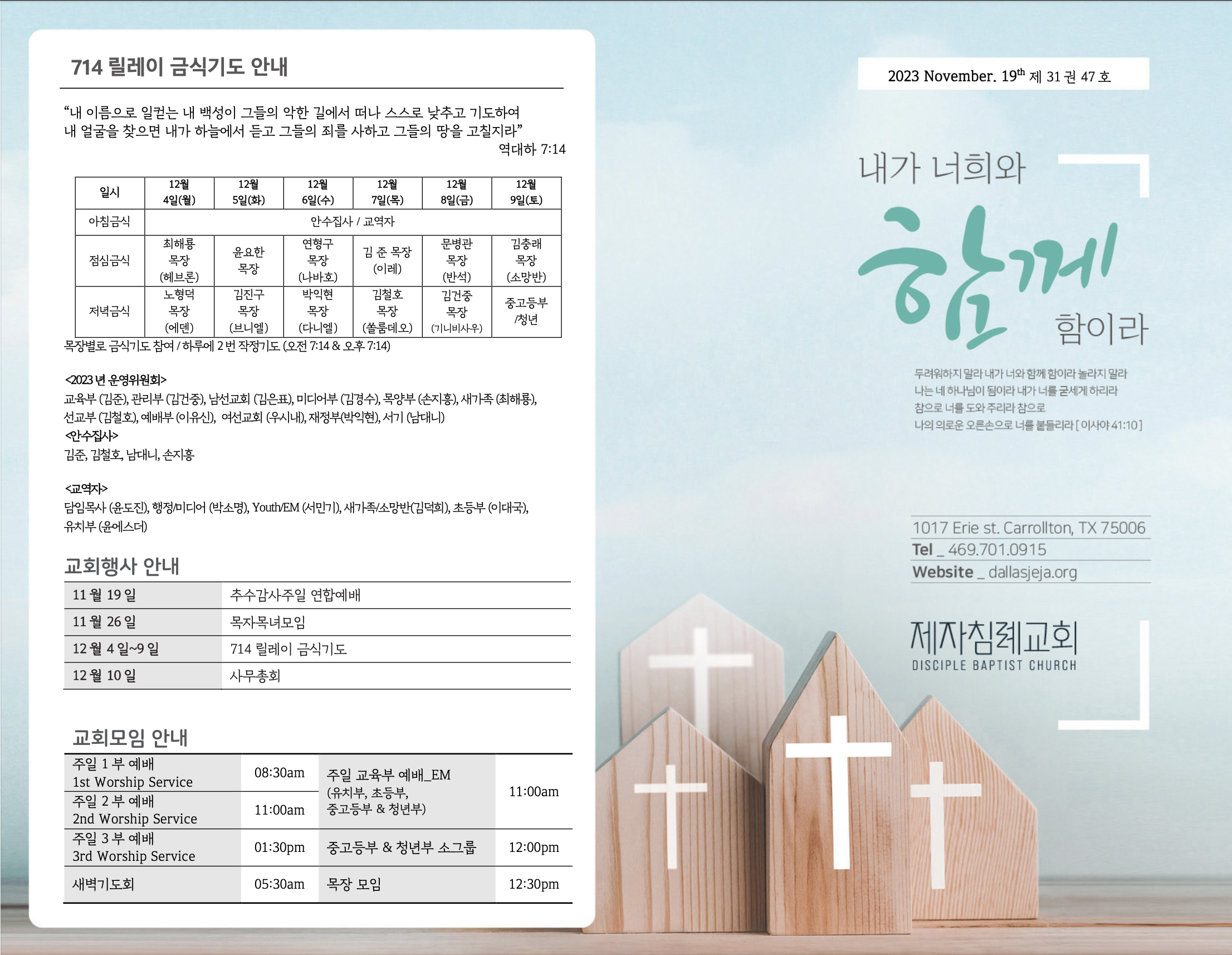 (2023.11.19) 주일예배 주보 페이지 정보 작성자 달라스제자침례교회 댓글 0건 조회 291회 작성일 23-11-18 12:17 목록 본문 - 이전글(2023.11.26) 주일예배 주보 23.11.25 다음글(2023.11.12) 주일예배 주보 23.11.11