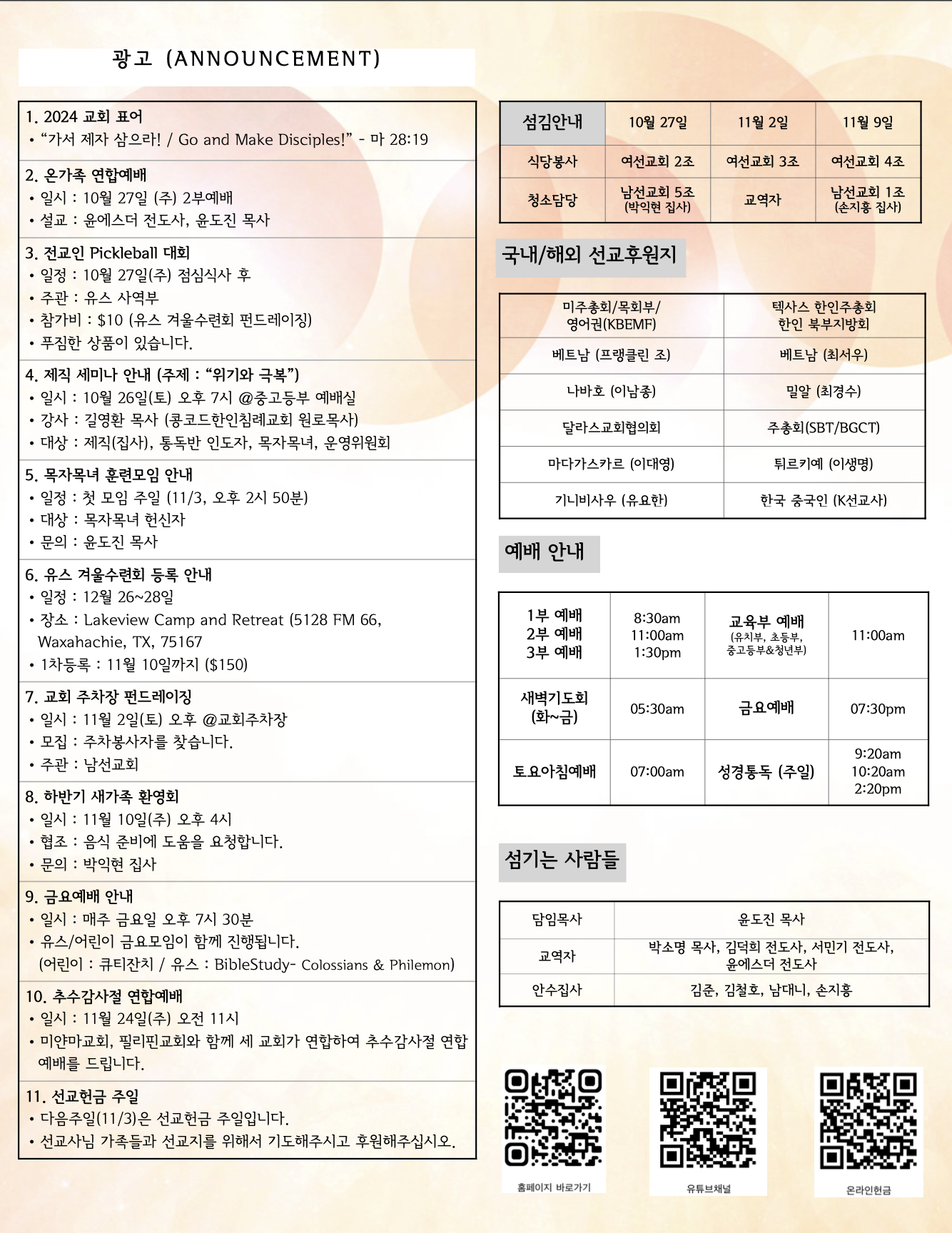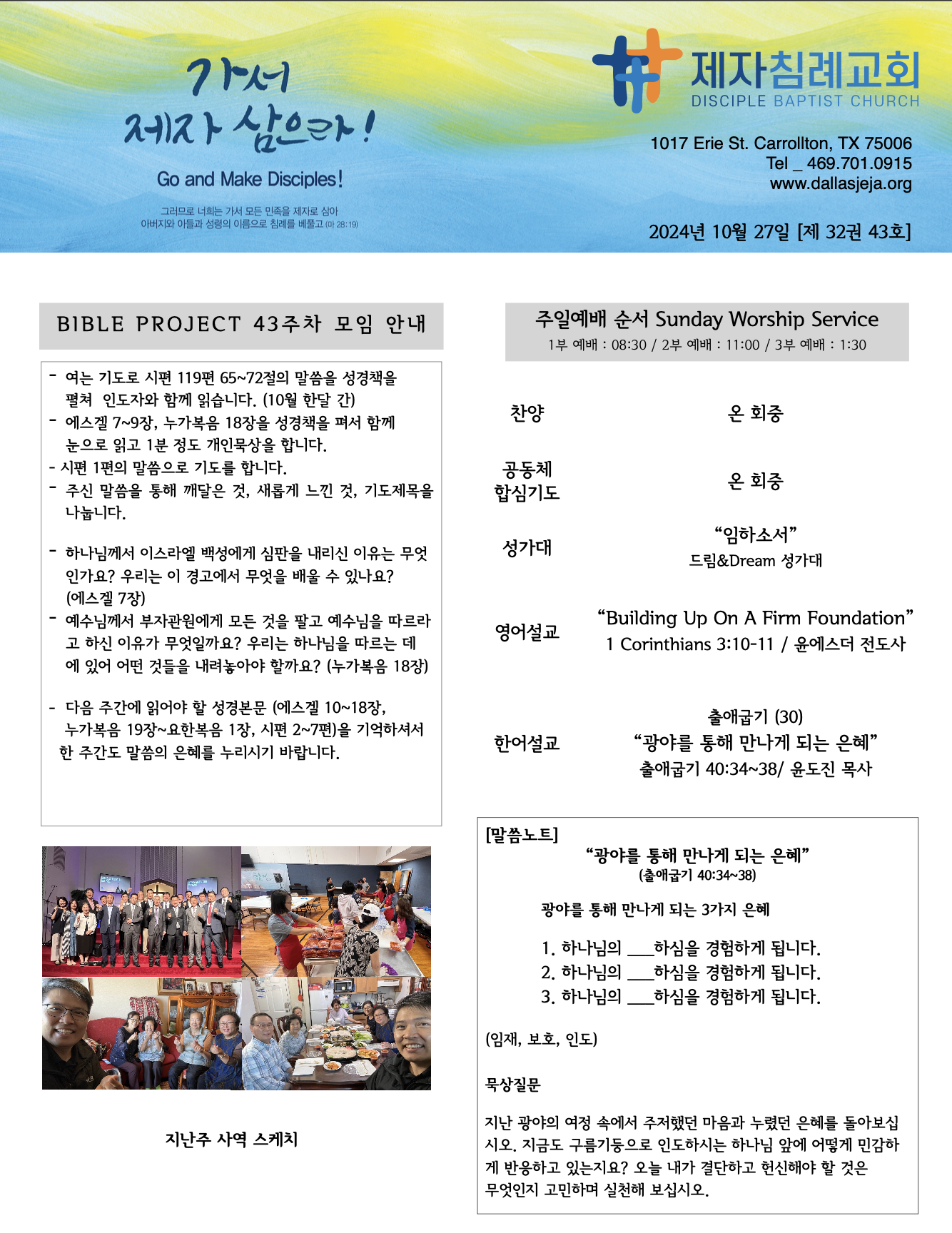 (2024.10.27) 주일 주보 페이지 정보 작성자 달라스제자침례교회 댓글 0건 조회 202회 작성일 24-10-26 16:39 목록 본문 - 이전글(2024.11.03) 주일 주보 24.11.02 다음글(2024.10.20) 주일 주보 24.10.19