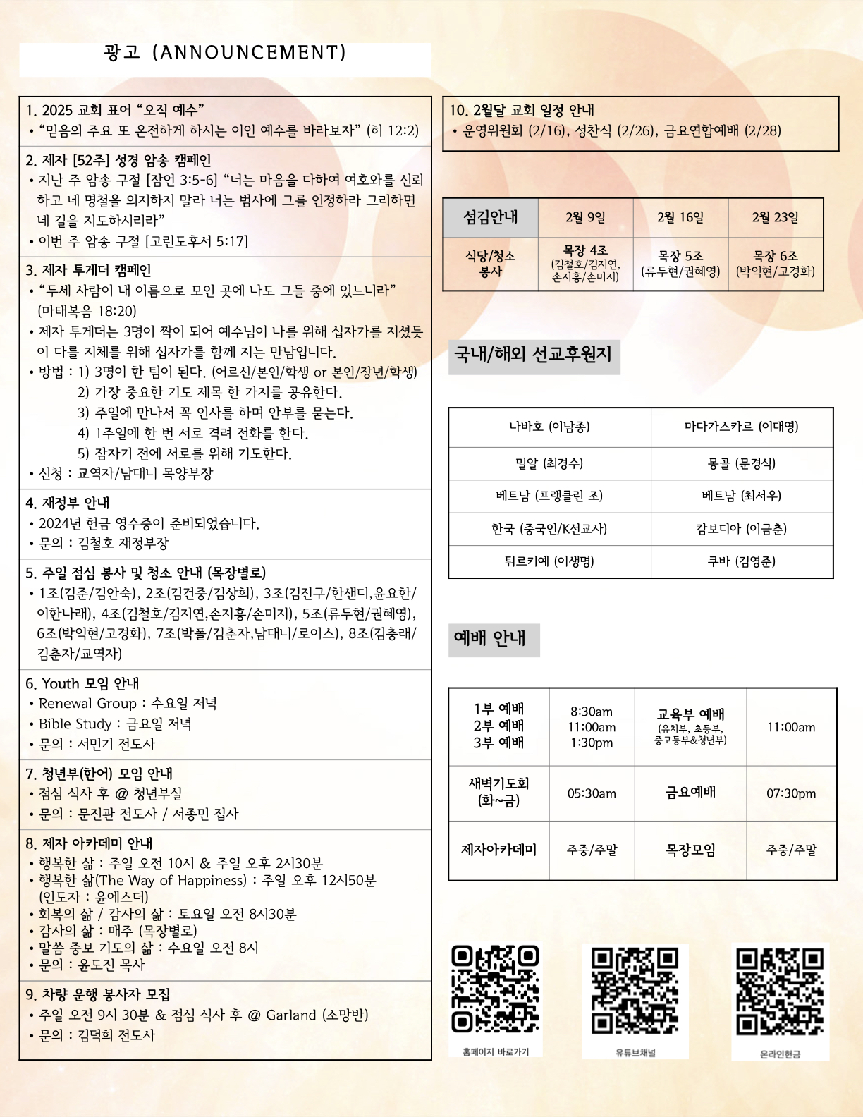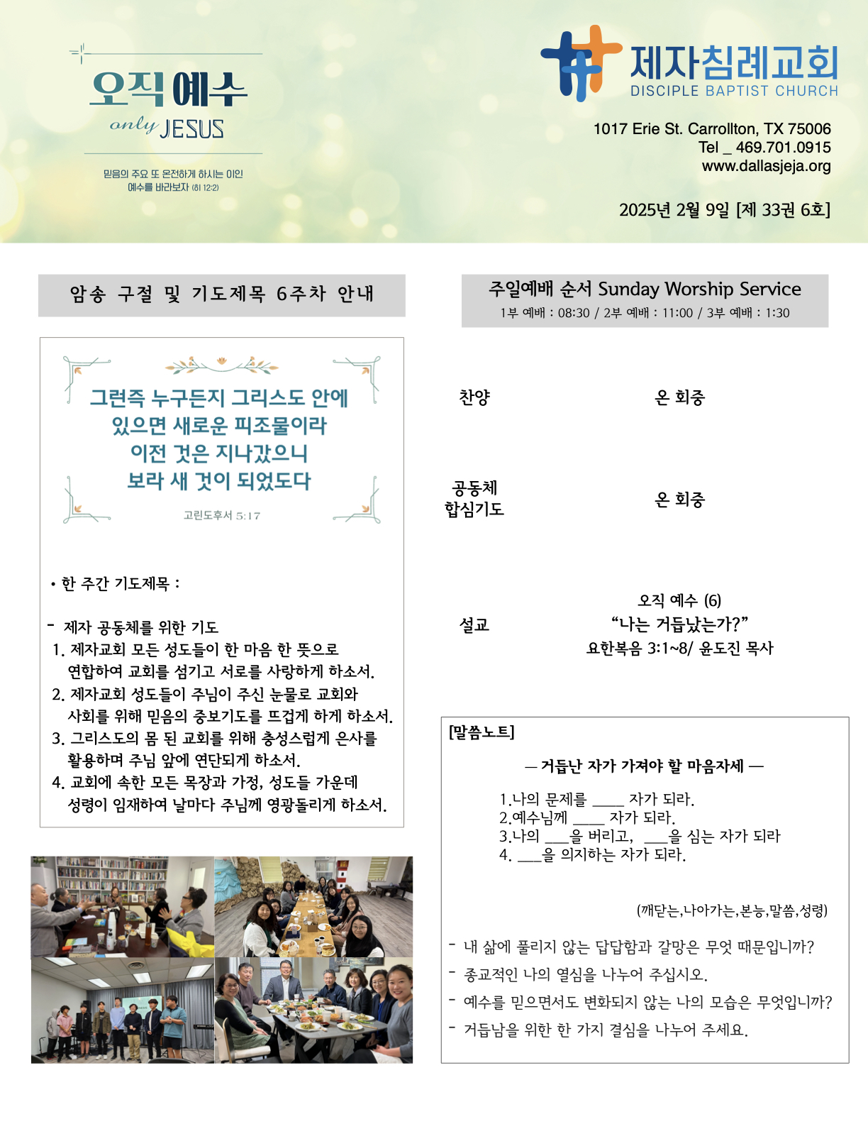 (2025.02.09) 주일 주보 페이지 정보 작성자 달라스제자침례교회 댓글 0건 조회 212회 작성일 25-02-08 12:01 목록 본문 - 이전글(2025.02.16) 주일 주보 25.02.15 다음글(2025.02.02) 주일 주보 25.02.01