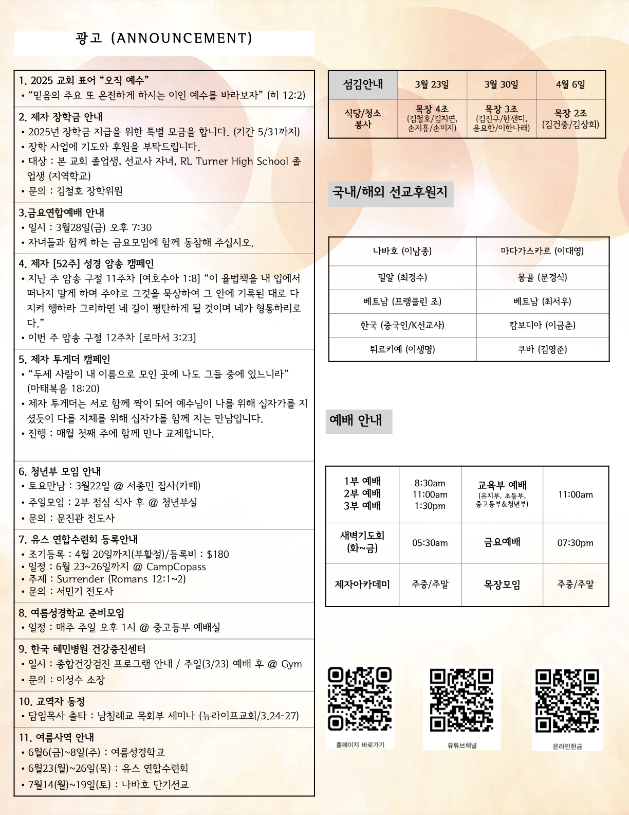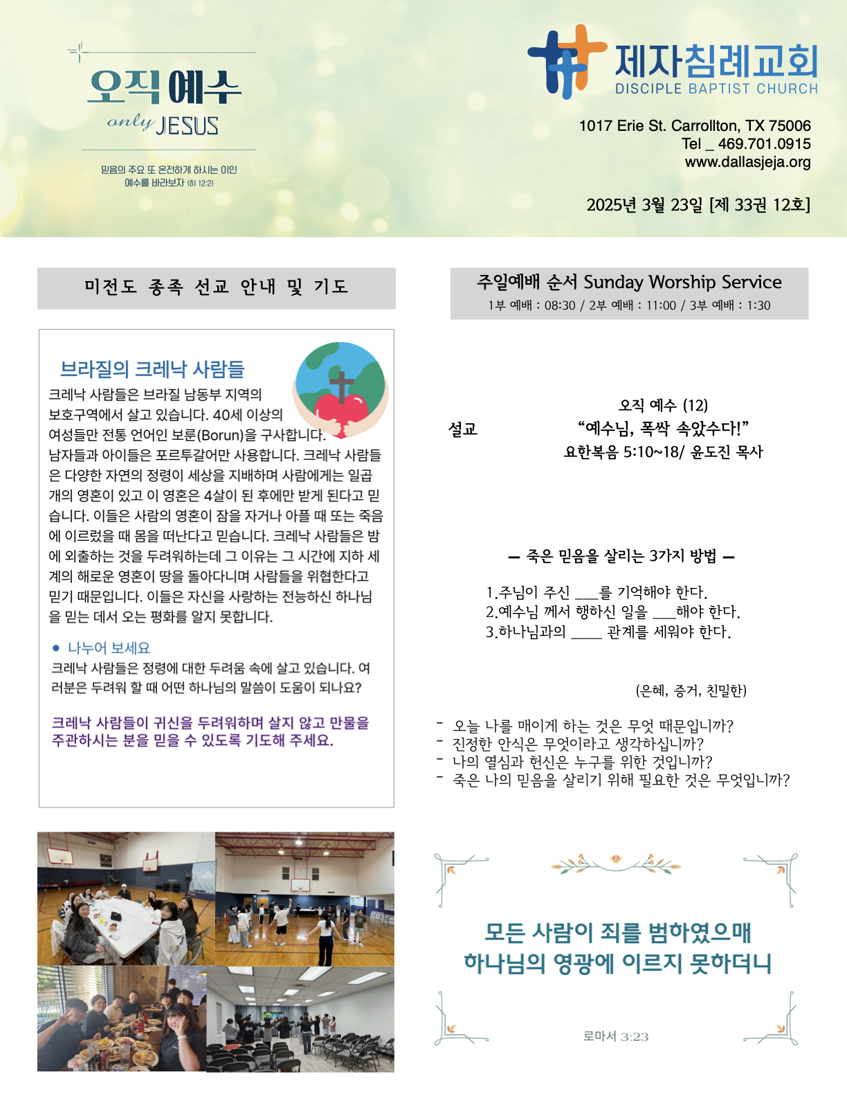 (2025.03.23) 주일 주보 페이지 정보 작성자 달라스제자침례교회 댓글 0건 조회 199회 작성일 25-03-22 13:00 목록 본문 - 이전글(2025.03.30) 주일 주보 25.03.29 다음글(2025.03.16) 주일 주보 25.03.15