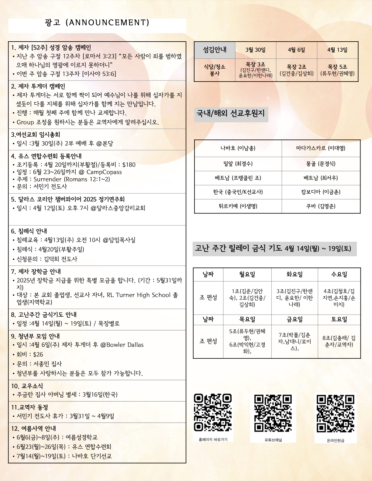 (2025.03.30) 주일 주보 페이지 정보 작성자 달라스제자침례교회 댓글 0건 조회 194회 작성일 25-03-29 11:01 목록 본문 - 이전글(2025.04.06) 주일 주보 25.04.05 다음글(2025.03.23) 주일 주보 25.03.22