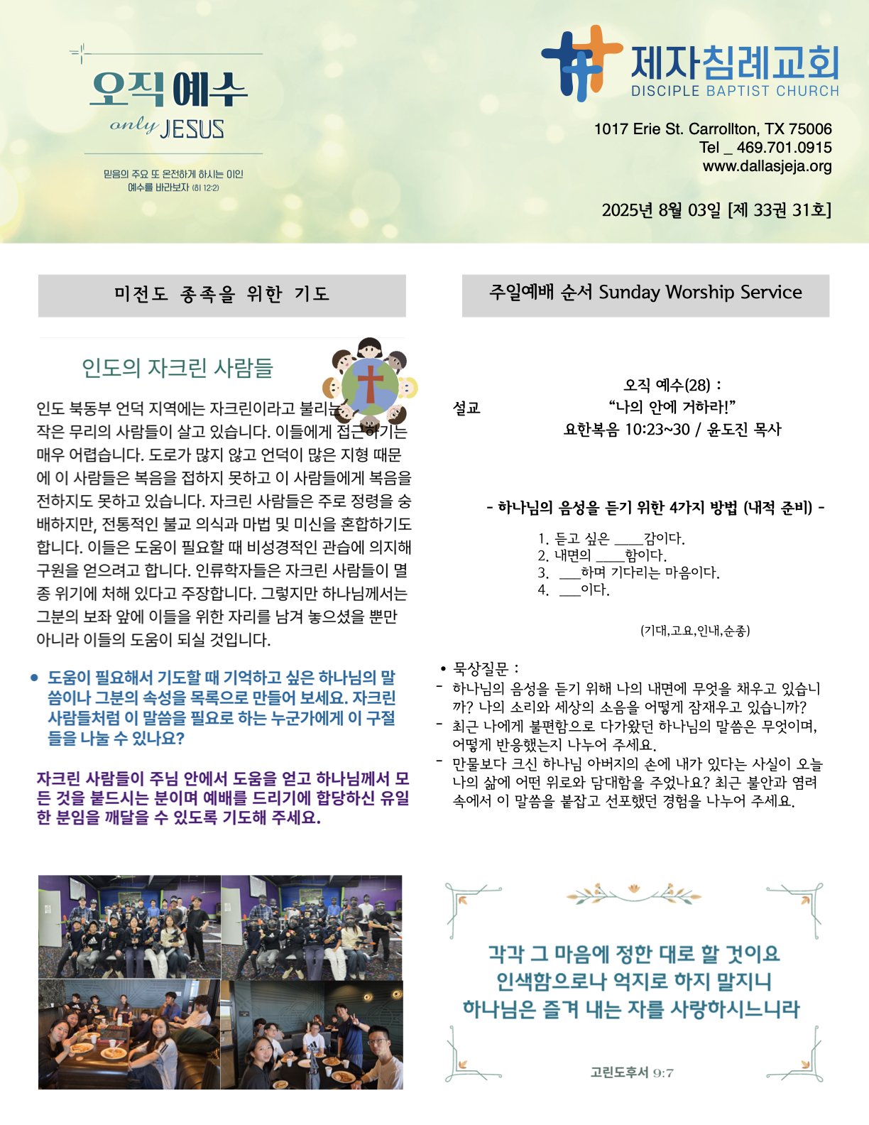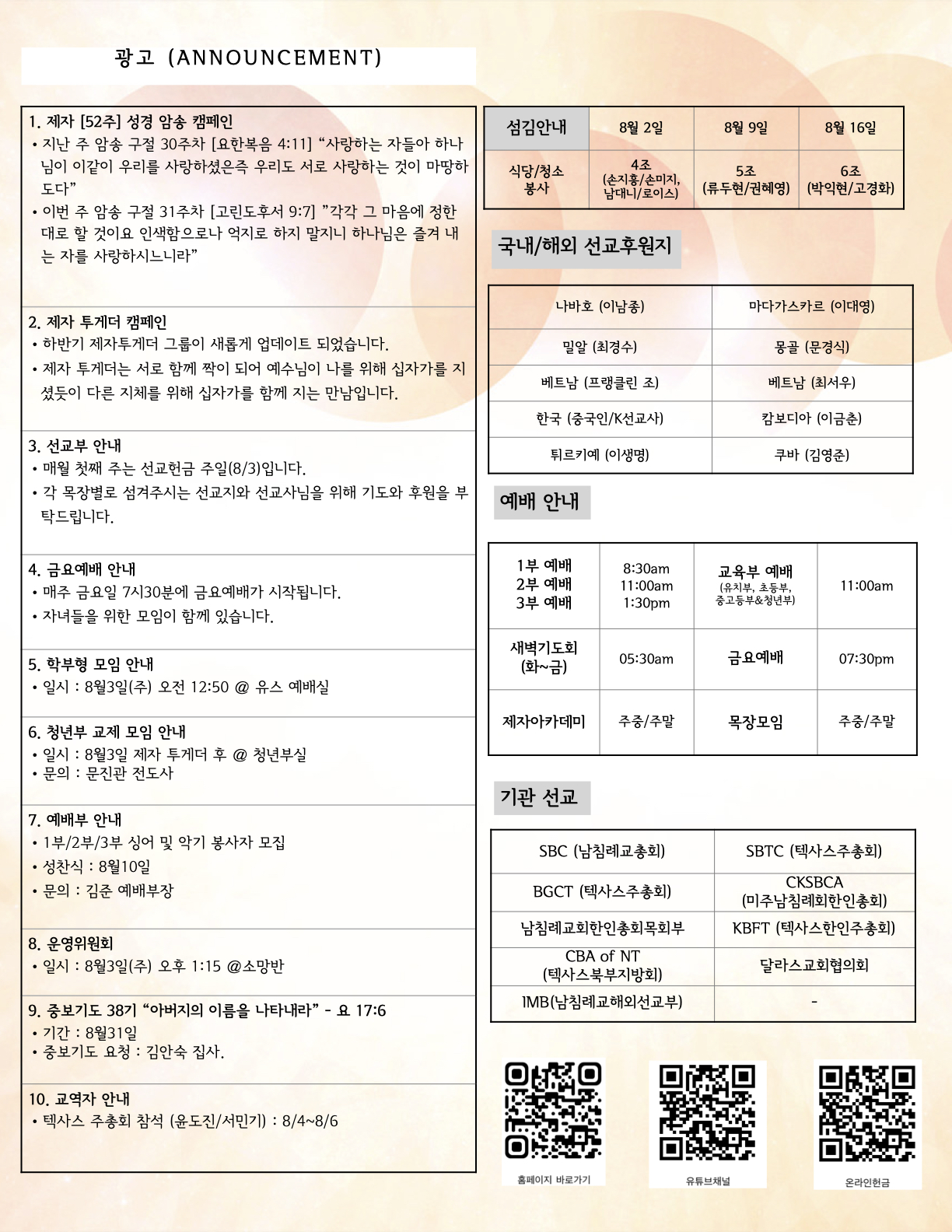 (2025.08.03) 주일 주보 페이지 정보 작성자 달라스제자침례교회 댓글 0건 조회 142회 작성일 25-08-02 12:02 목록 본문 - 이전글(2025.08.10) 주일 주보 25.08.09 다음글(2025.07.27) 주일 주보 25.07.26