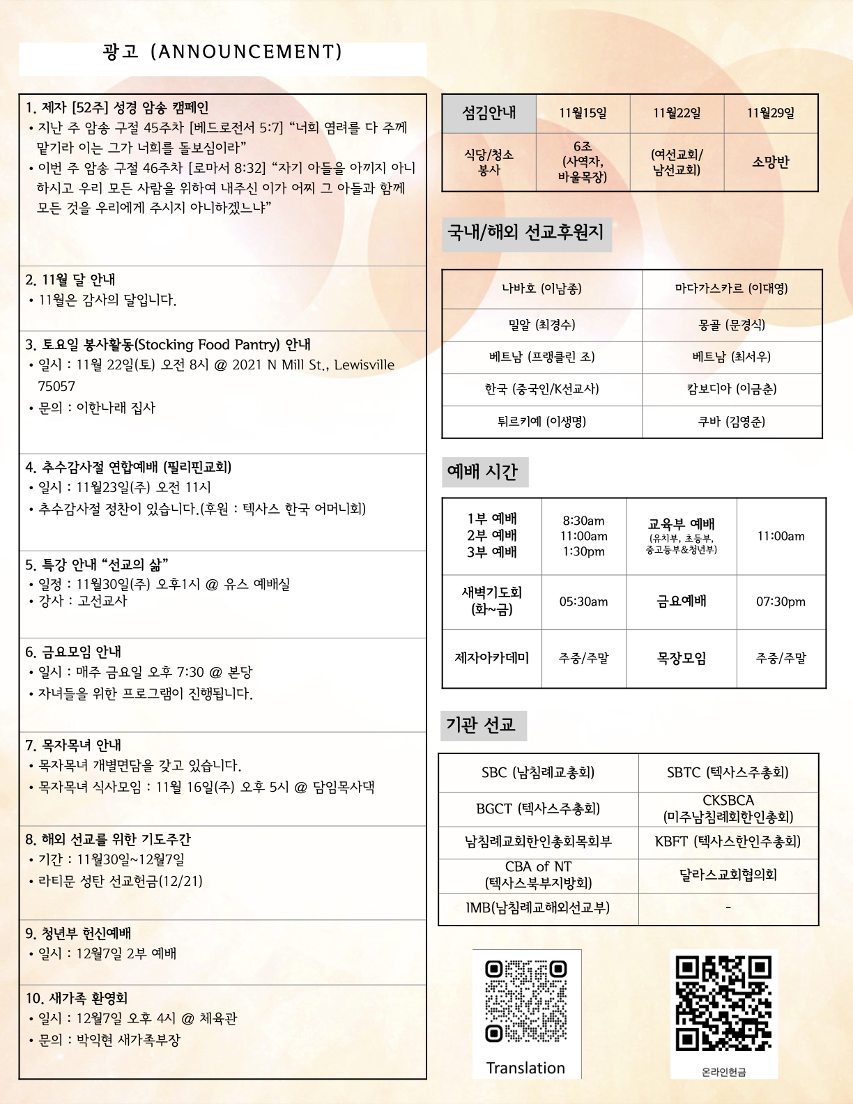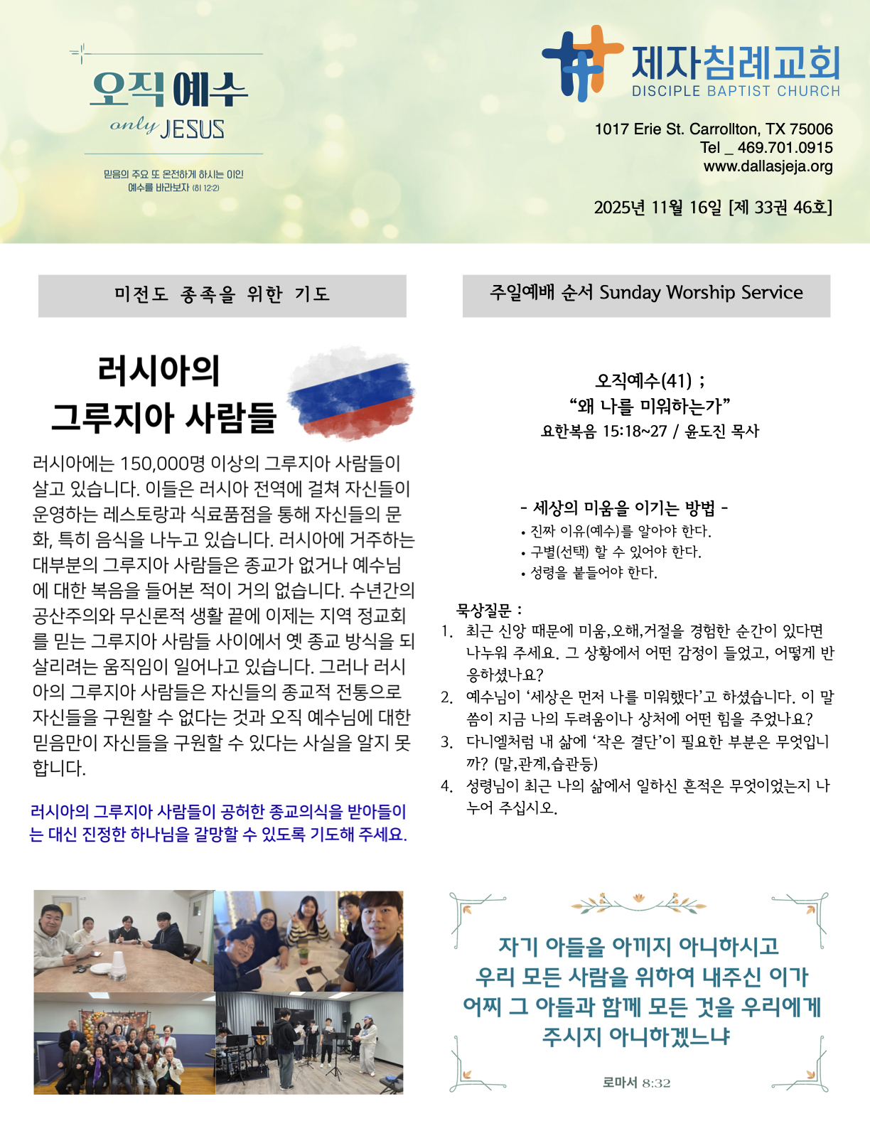(2025.11.16) 주일 주보 페이지 정보 작성자 달라스제자침례교회 댓글 0건 조회 39회 작성일 25-11-15 17:30 목록 본문 - 이전글(2025.11.23) 주일 주보 25.11.22 다음글(2025.11.09) 주일 주보 25.11.15